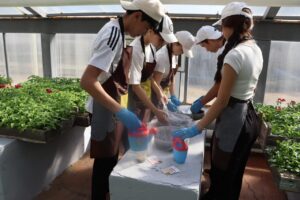 Второй этап прошёл в школьной теплице, где девятиклассники приняли участие в практическом занятии. Они познакомились с процессом выращивания цветов, высадили растения и освоили основные принципы ухода за ними. Такая практика не только укрепила их знания по биологии, но и способствовала формированию бережного отношения к окружающей среде.