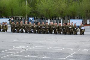 Оқу орнында Астана, Алматы, Тараз, Шымкент, Орал, Қостанай және Өскемен қалаларынан әскерге алынғандар жас жауынгер курсынан өтіп, әскери ант берді.