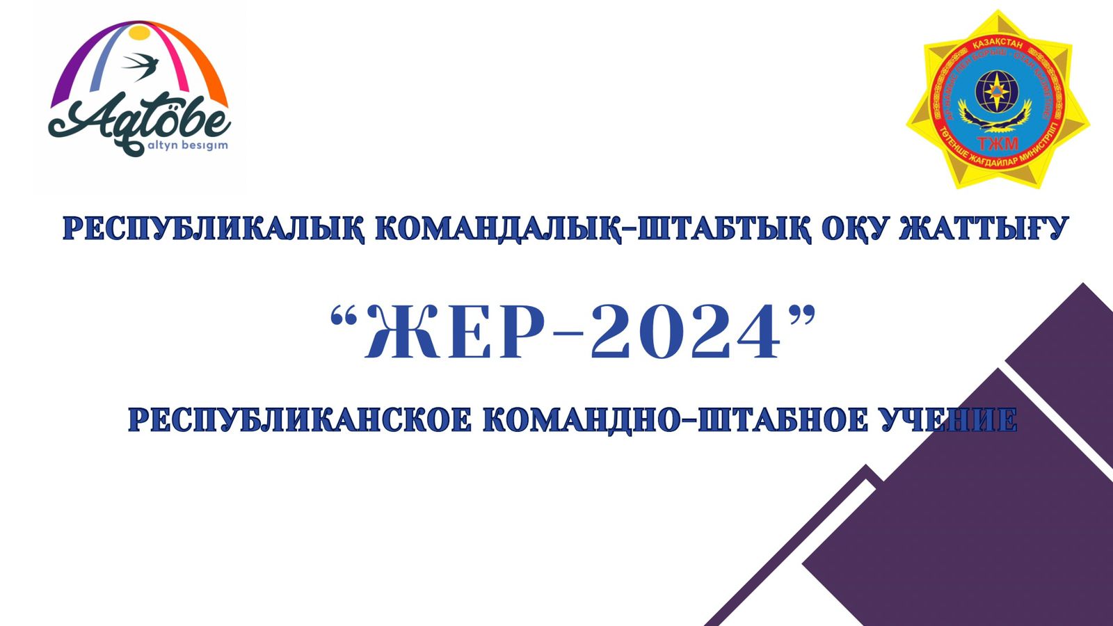 2024 жылғы 3-4 маусым аралығында Қазақстан Республикасының аумағында «Жер-2024» Республикалық командалық-штабтық оқу-жаттығуы өткізіледі, онда «азаматтық қорғаудың мемлекеттік жүйесінің басқару органдарын, күштері мен құралдарын жойқын жер сілкінісі нәтижесінде туындаған ТЖ жою кезіндегі іс-қимылдарға дайындау» тақырыбында өткізіледі.