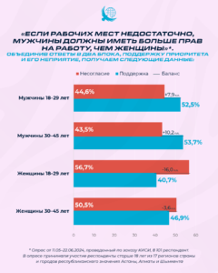 Среди мужчин 18–29 лет поддержка этой идеи выше, чем у женщин того же возраста. Разрыв составляет около 24 процентных пунктов. Этот разрыв не указывает на идеологический конфликт и не свидетельствует о радикализации. Он даёт различие темпов в изменениях. Молодые женщины быстрее переосмысливают модель партнёрства и ценности, связанные с распределением ролей, а позиции молодых мужчин меняются медленнее. В результате гендерные различия сегодня проявляются уже не в доступе к образованию, который в целом обеспечен, а в ценностях и ожиданиях внутри одного поколения.